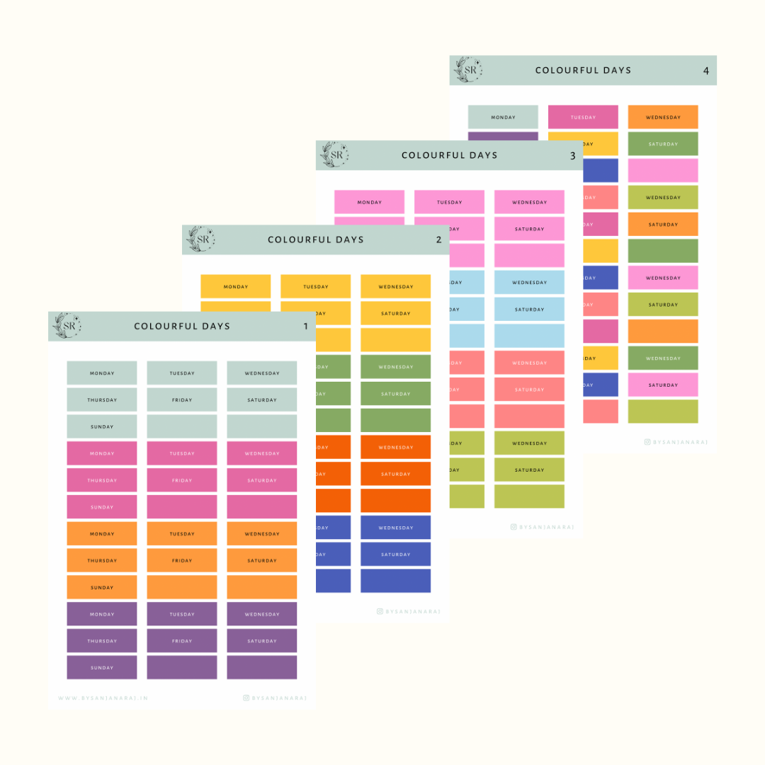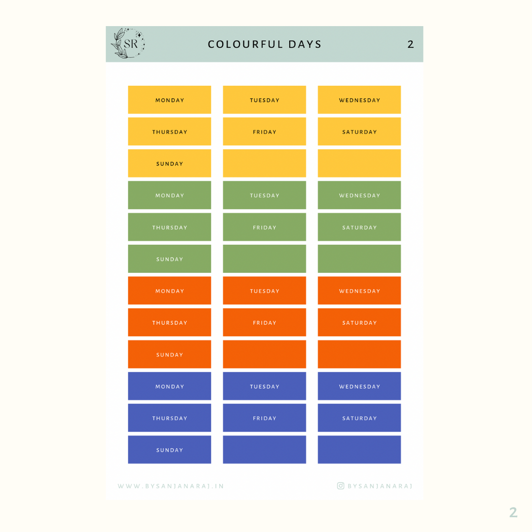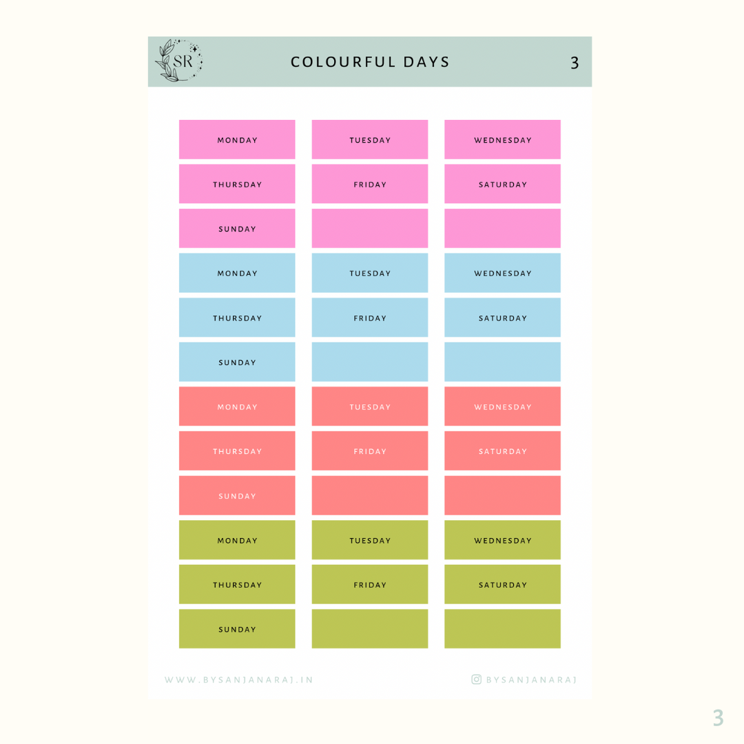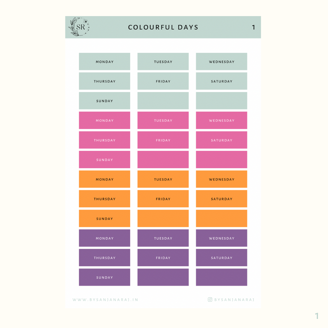 Colourful Days | Calendar Essentials | Planner Stickers | By Sanjana Raj