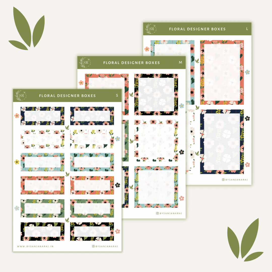 Floral Designer Boxes | Planner Stickers | By Sanjana Raj