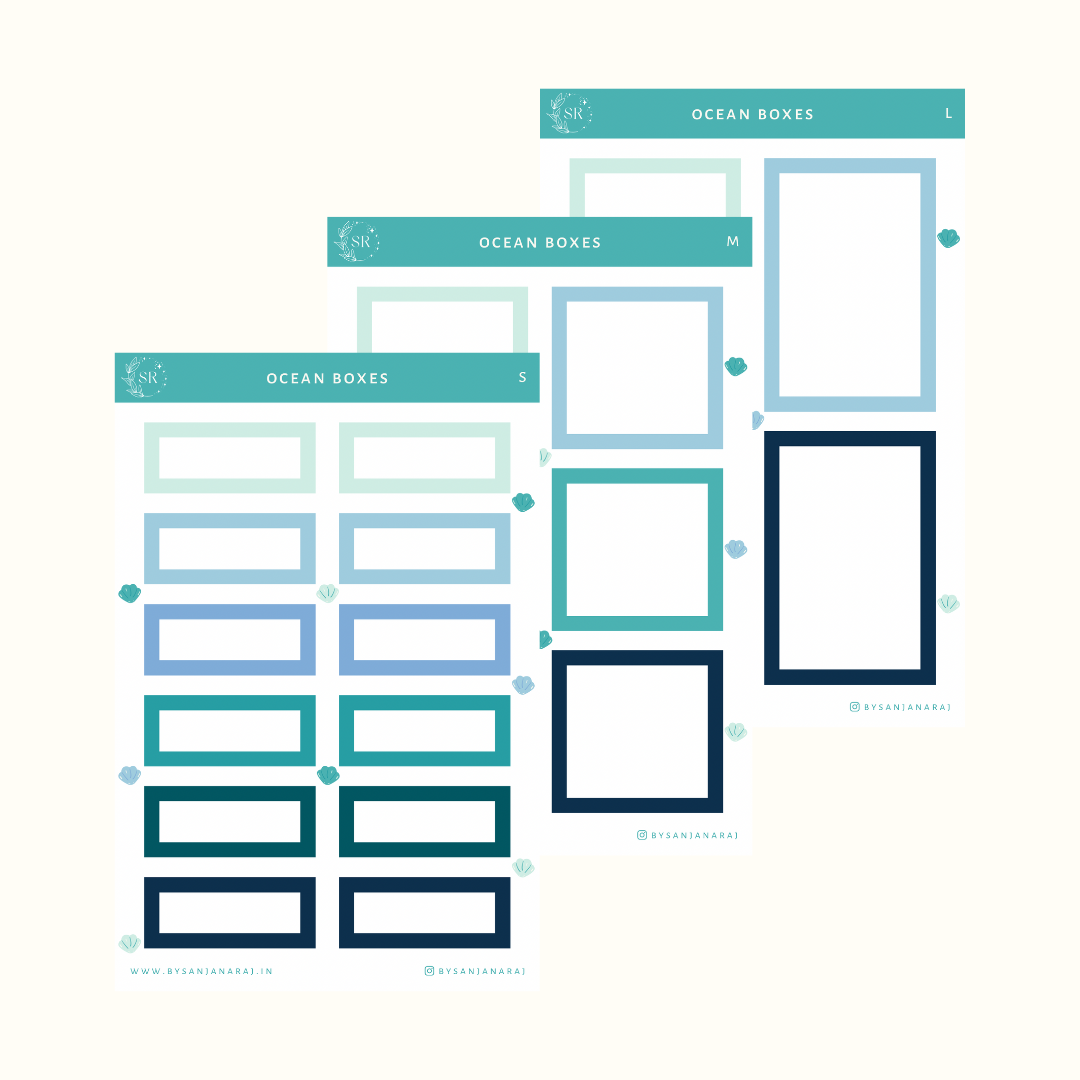 Ocean Colourful Boxes | Planner Stickers | By Sanjana Raj