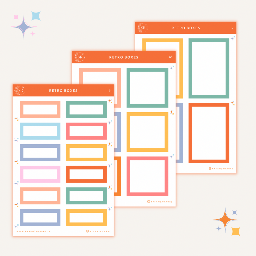 Retro Colourful Boxes | Planner Stickers | By Sanjana Raj